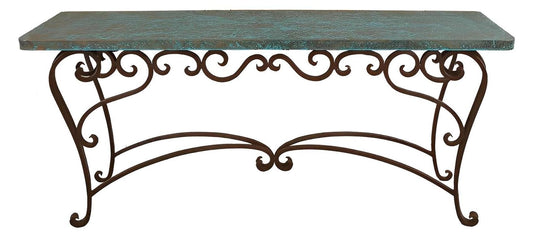 Red Basin 60" Turquoise Copper Top Console With Iron Base