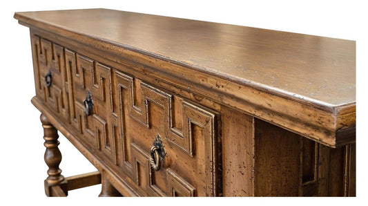 Saint-Suliac Console Table, Antique Brown, Carved Front Panels With Metal Ring Pulls