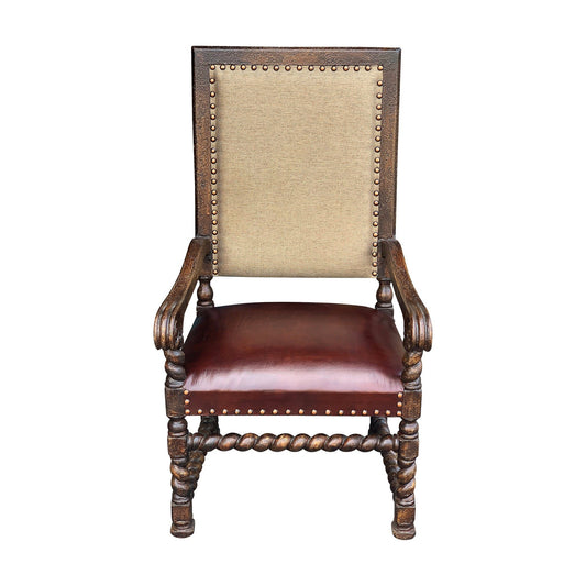 Tooled Leather Back Dining Chair with Hand-Carved Wood (2-Pack)