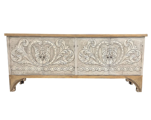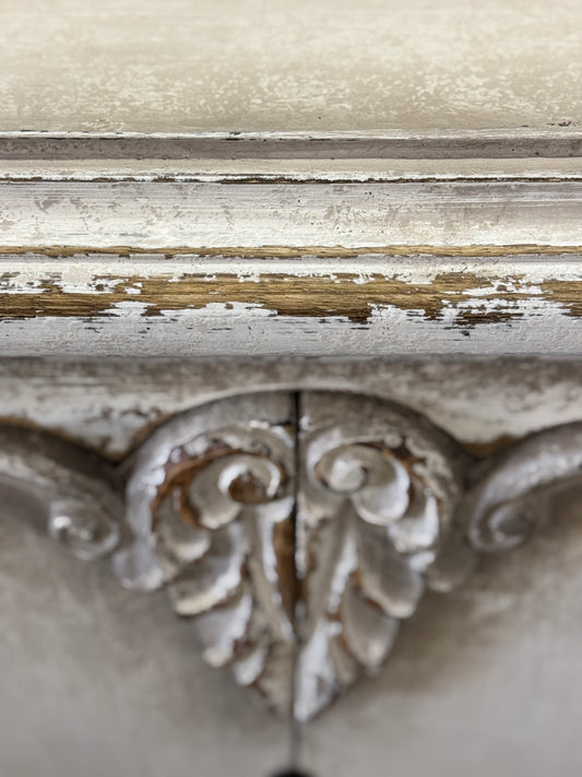 Talcy Distressed White European Style Dining Buffet Table With Ornate Carvings