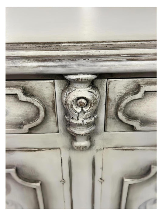 Durtal Ivory Distressed Dining Buffet, Lyon Palatial Handcrafted Vintage Charm