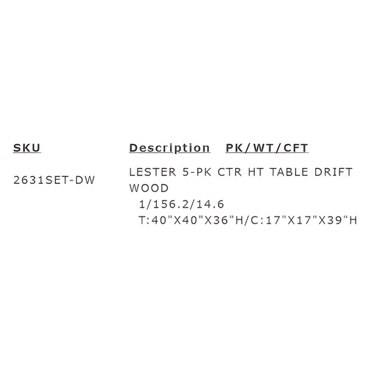 Lewis 5-PC Counter Height Table & 4) Chairs; Drift Wood Finish