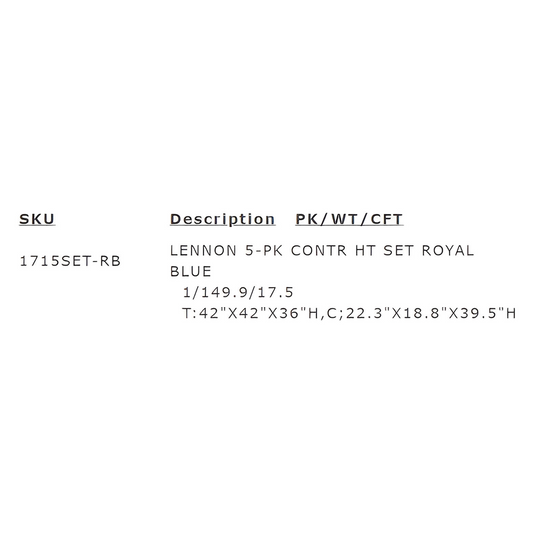 Lennix 5PC Counter Ht Table & 4) Royal Blue Velvet-Upholstered Chairs