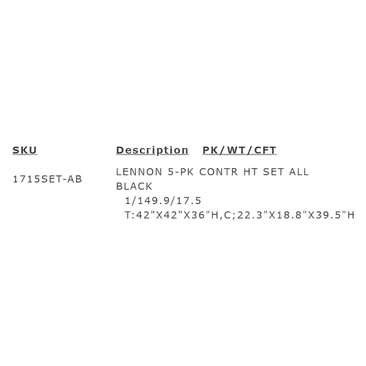 Lennix 5-PC Counter Height Table & 4) Chairs; Bold, Striking, Black