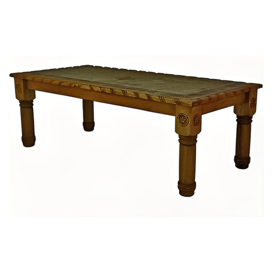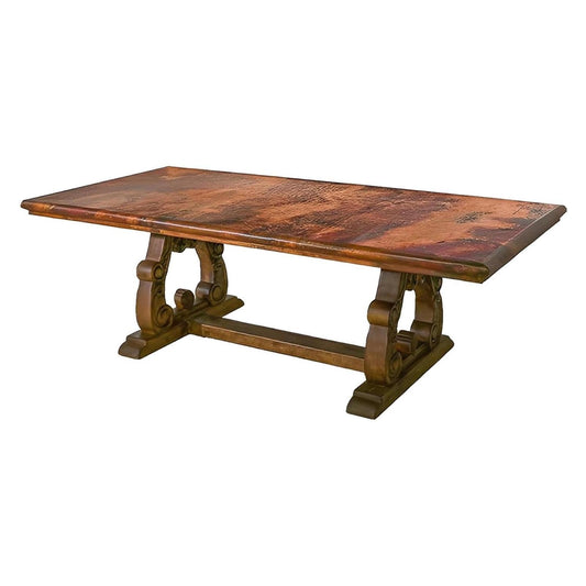 Serrano Rectangular Dining Table | Handcrafted Copper Top & Carved Wood Base | 84x44x30.5