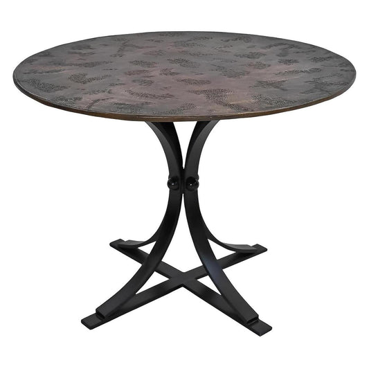 Natural Verde Round Cobre Dining Table | Handcrafted Green Copper Top & Iron Base