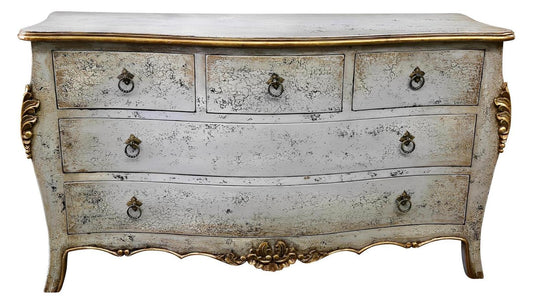 Lavaur Dresser, Distressed White With Gold Accents, Ornate Floral Detailing And Cabriole Legs