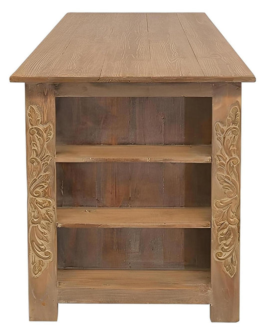 Wolf Canyon Kitchen Island With Double-Side Drawers, Hand Carving And Storage Shelving