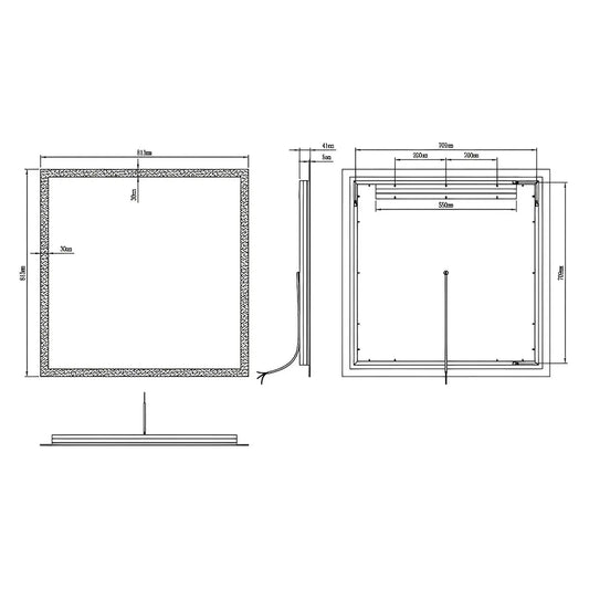 ZEPHYRA LED LIGHTED BATHROOM VANITY RECTANGLE MIRROR - 40 x 40
