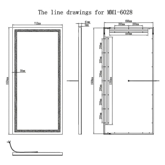 MIRA LED LIGHTED FULL-LENGTH HOLLYWOOD VANITY RECTANGLE MIRROR - 70 x 32