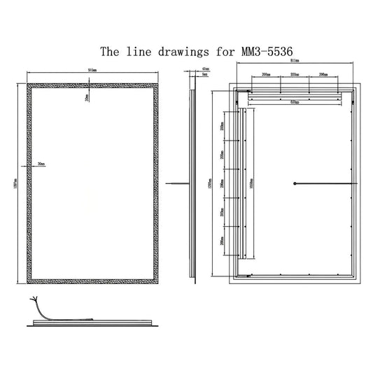 ZEPHYR LED LIGHTED BATHROOM VANITY RECTANGLE MIRROR - 55 x 36