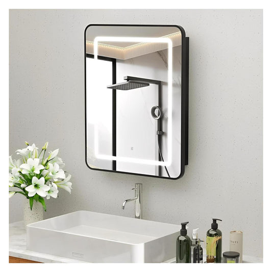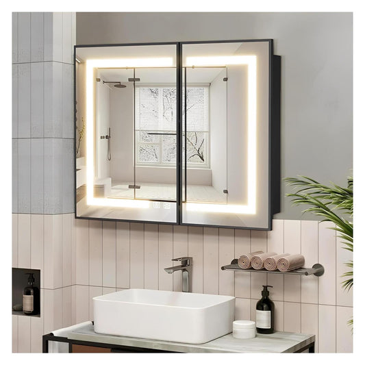 Framed Recessed Bathroom Vanity LED Mirror and Medicine Cabinet (16-30 in) - Adjustable Brightness and Color Temperature - Anti-Fog