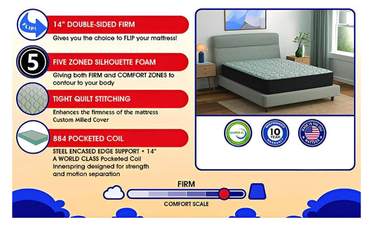 Mattress in a Box | BLACK ICE Euro Top Medium Firm Hybrid Cooling Mattress Made in the USA | 14-inch