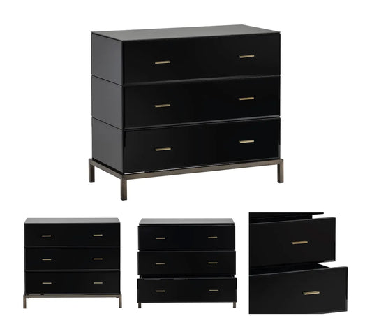 Essex Polished Black Nightstands (2-Pack), Metal, Mirror, Wood, Contemporary, Transitional, tapered legs, brushed metal