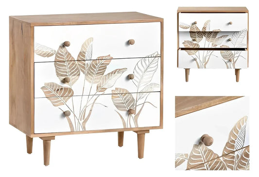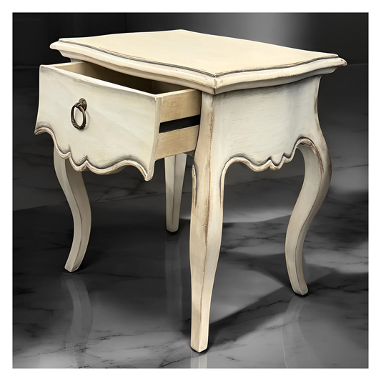 Celeste Nightstand, Cream, Distressed White-Washed Finish With Antique Ring Pulls, Hand-Painted Details