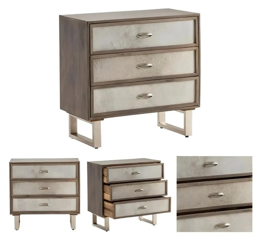 Bethel Stained Grey Nightstands (2-Pack), Hair On Hide, Mango Wood, Metal, Rustic, Transitional, distressed wood