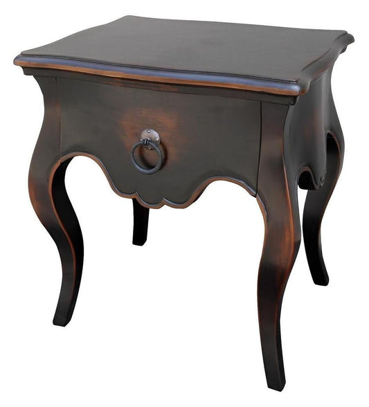 Versailles II Nightstands (2-Pack), Black With Distressed Brown Trim, Antique-Style Ring Pull Drawer, Cabriole Legs