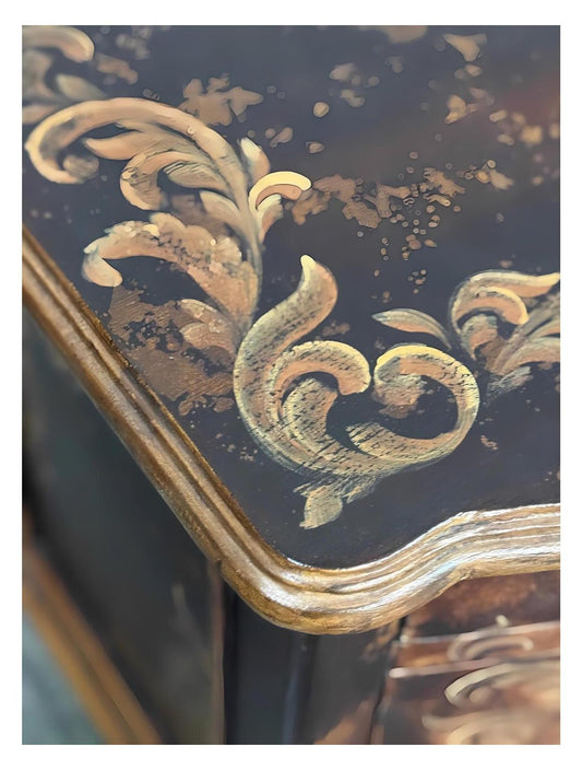 Conques Nightstands (2-Pack), Black, Hand Painted Ornate Antique Gold Floral Finish