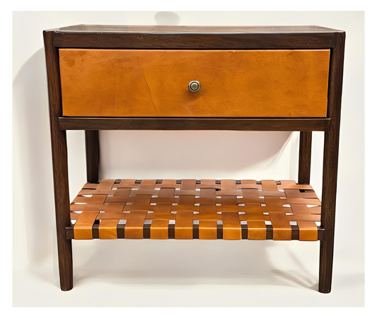 Nazca Nightstands (2-Pack), Walnut, Leather-Woven Drawer Fronts