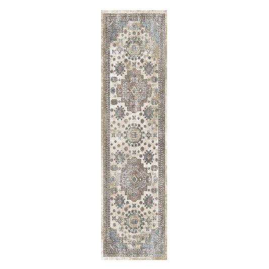 Athens Thessalonica Ivory 2'7"x7'7" Polyester Machine Loomed Area Rug 12mm pile height