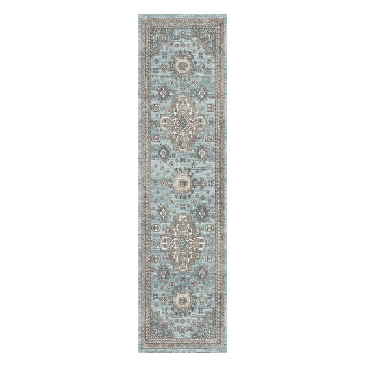 Athens Tripoli Blue 2'7"x7'7" Polyester Machine Loomed Area Rug 12mm pile height