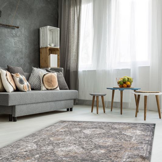 Firenze Area Rug Celestial Gray 5'3"x7'3" Traditional Design, Low-Profile 9mm pile height, Thin