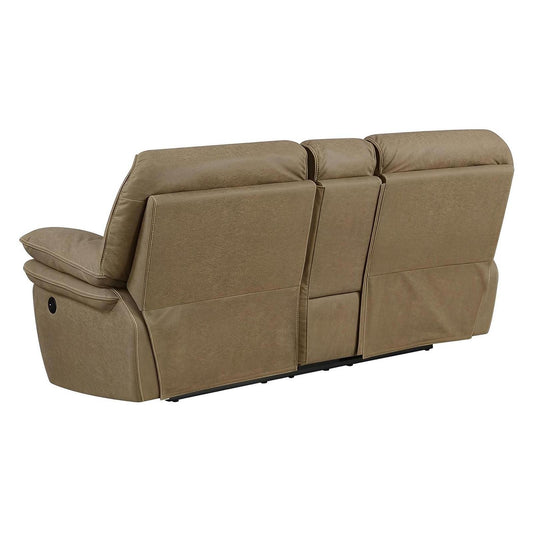 LOVESEAT WITH POWER CONSOLE - USB POWER OUTLET - LIGHT BROWN - 2 Recliners