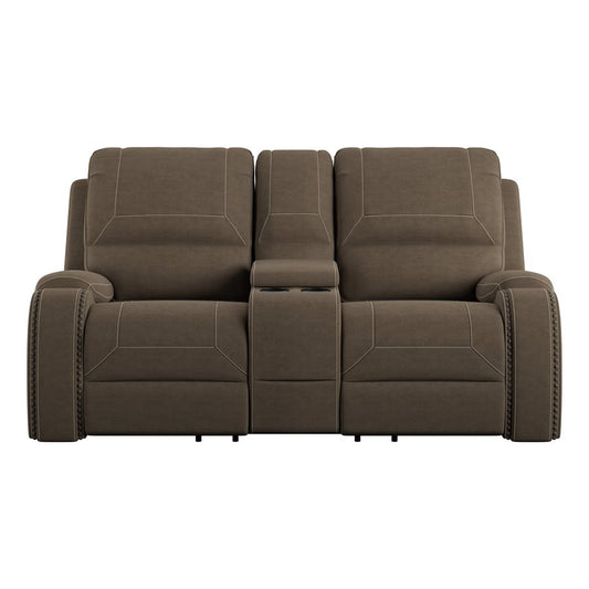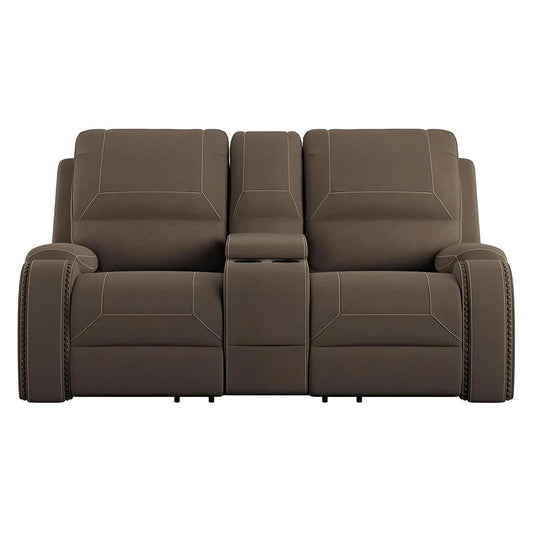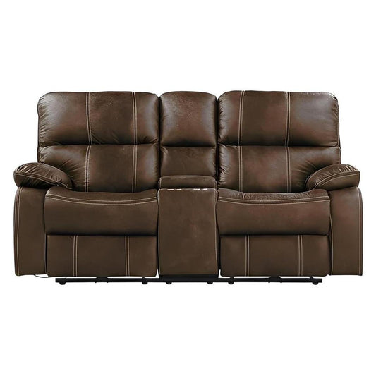 POWER CONSOLE LOVESEAT W / USB POWER OUTLET - BROWN - 2 Recliners