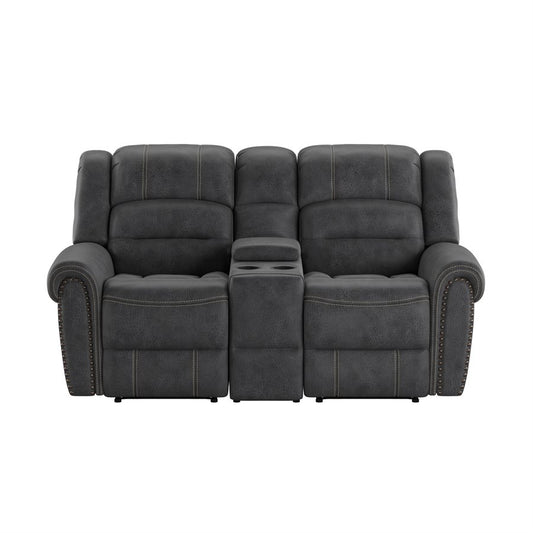 POWER CONSOLE LOVESEAT W / USB POWER OUTLET - GREY - 2 Recliners