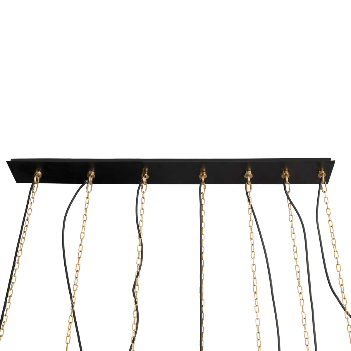 Dimensions: 40.5 x 5.25 x 66.5 (in). The Crestview Collection Ariel Floating Circles Pendant Lamp has seven lights that are drop hung on brass chains from a black rod. At the end of each chain is a circle of wither brass or black that holds a single round light globe. If you love windchimes or dreamcatchers you are sure to love this light's style.