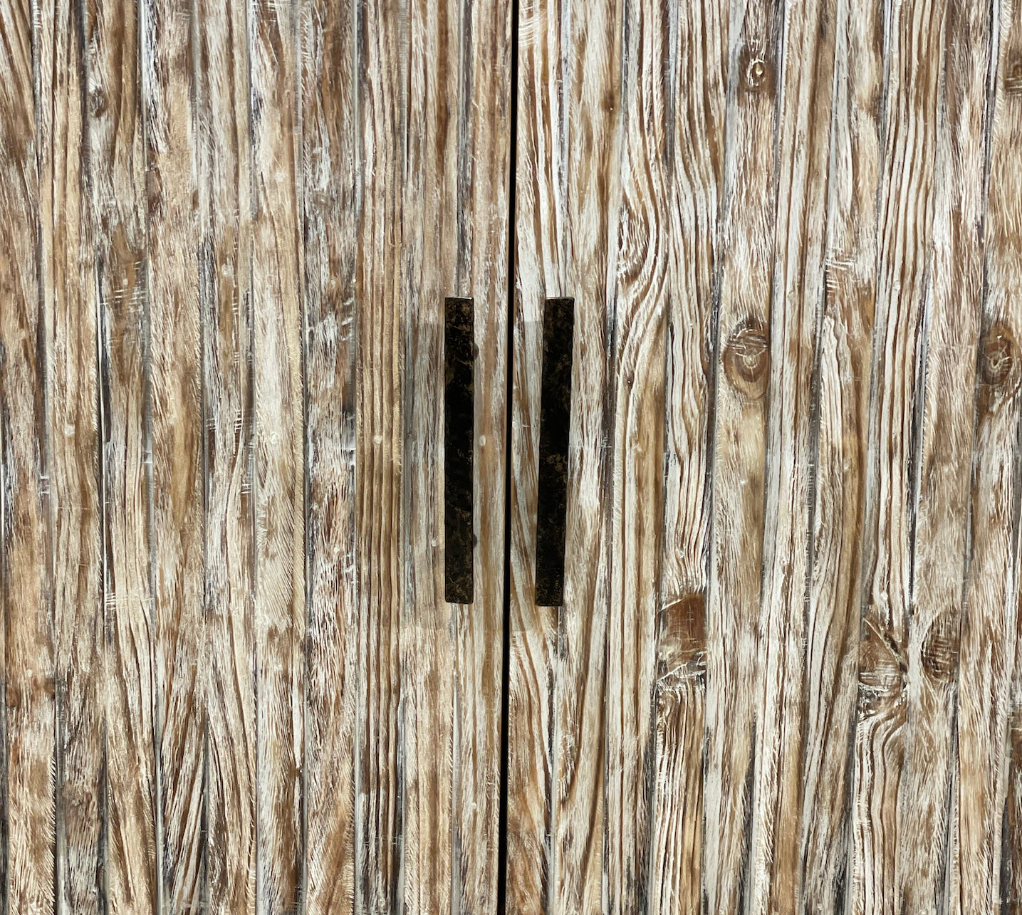 - Finish: Natural weathered patina that highlights prominent grain and knots.
