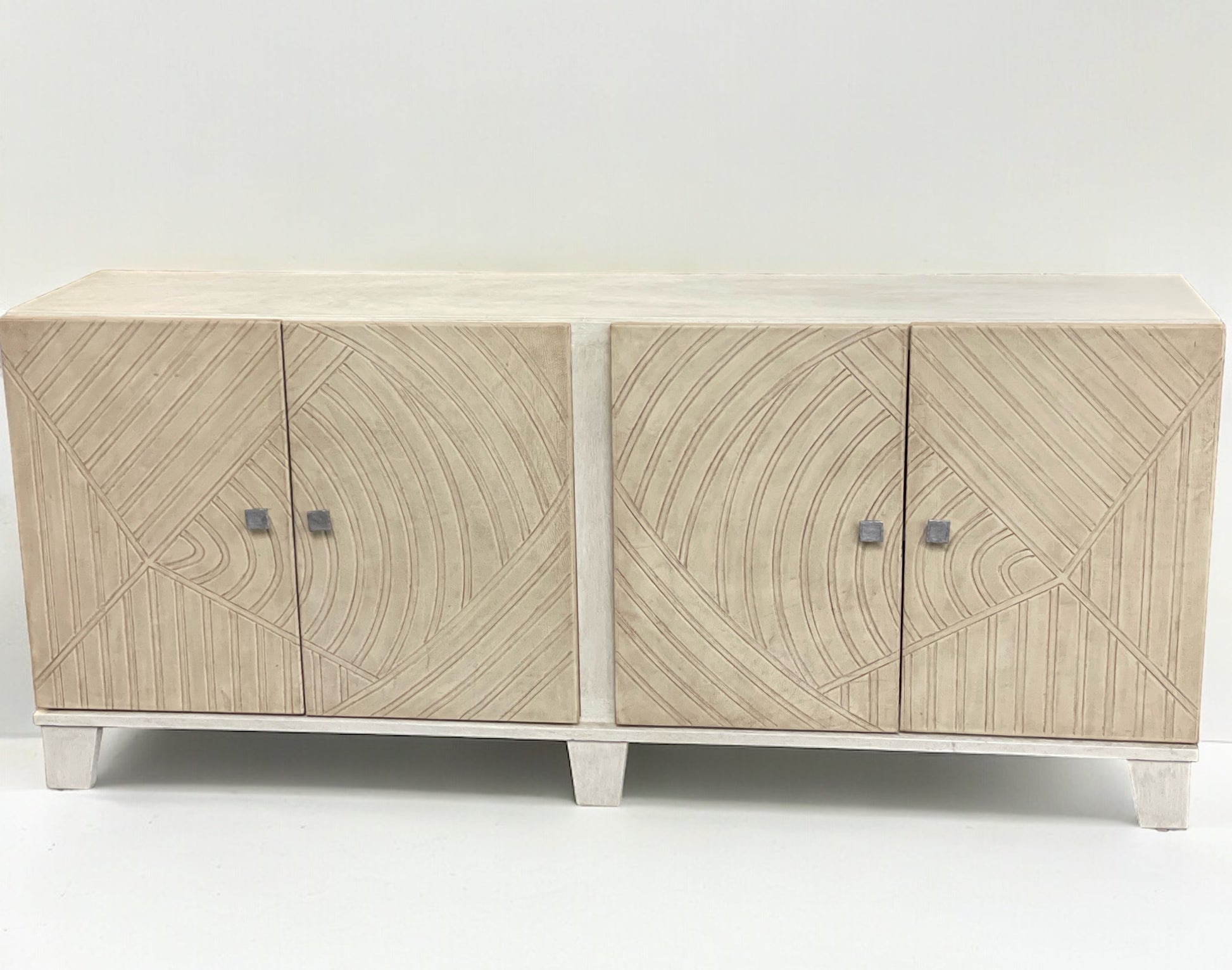 Designed for everyday use, this buffet provides generous surface space on top for serving and display, while its interior storage keeps dishes, linens, and essentials neatly tucked away. The intersecting line pattern on the doors adds subtle texture and visual interest, making this piece a standout centerpiece in your dining room.