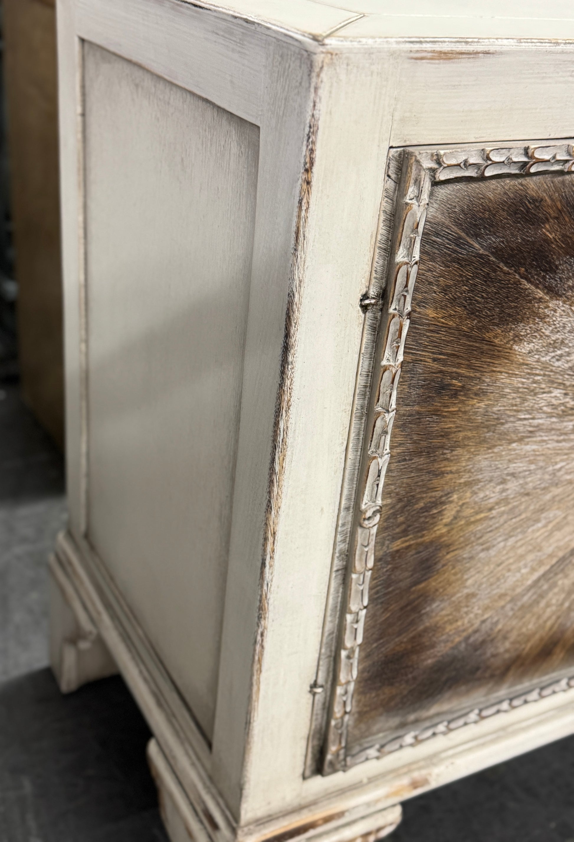 - Decorative carved apron enhances the furniture’s artisanal character