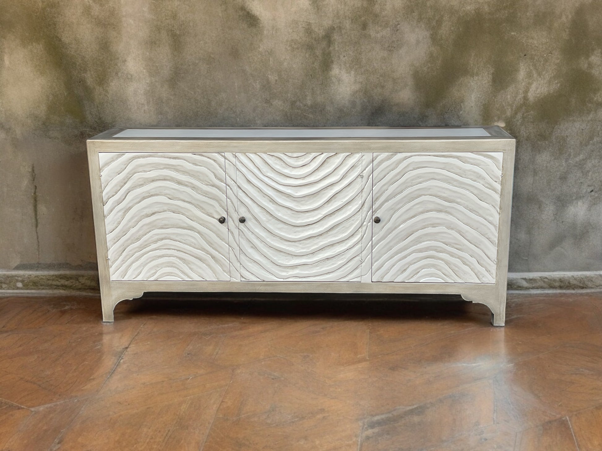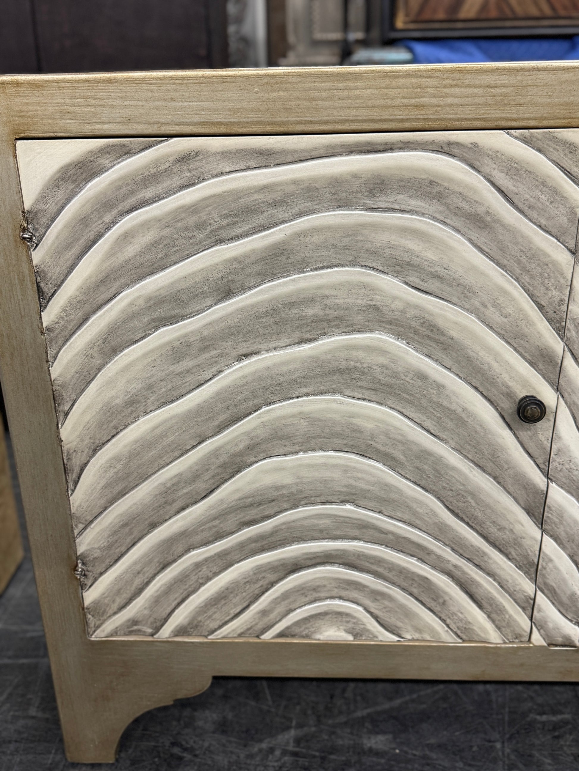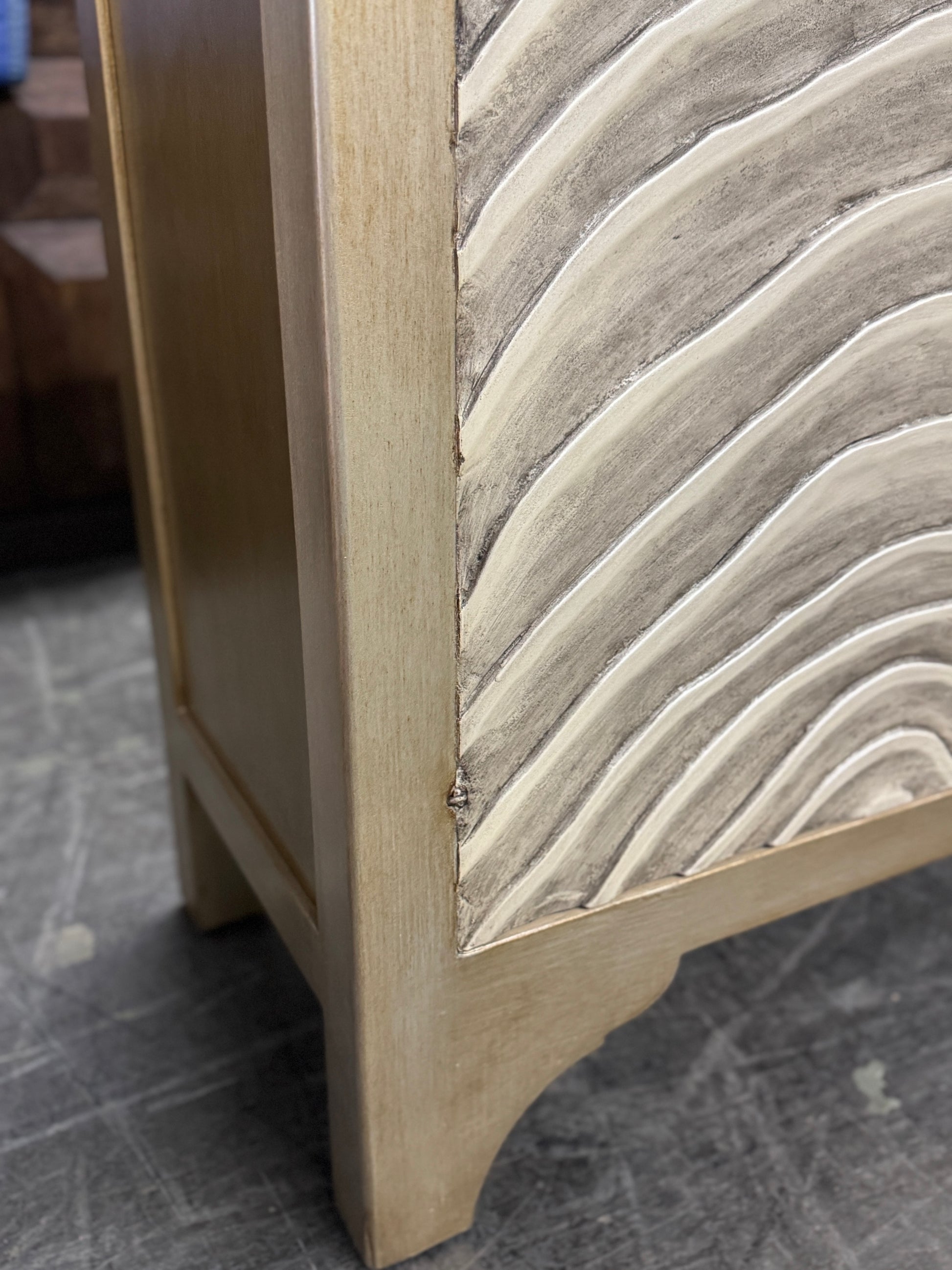 - Handcrafted construction with a distinctive wave-carved front panel for added texture and depth.