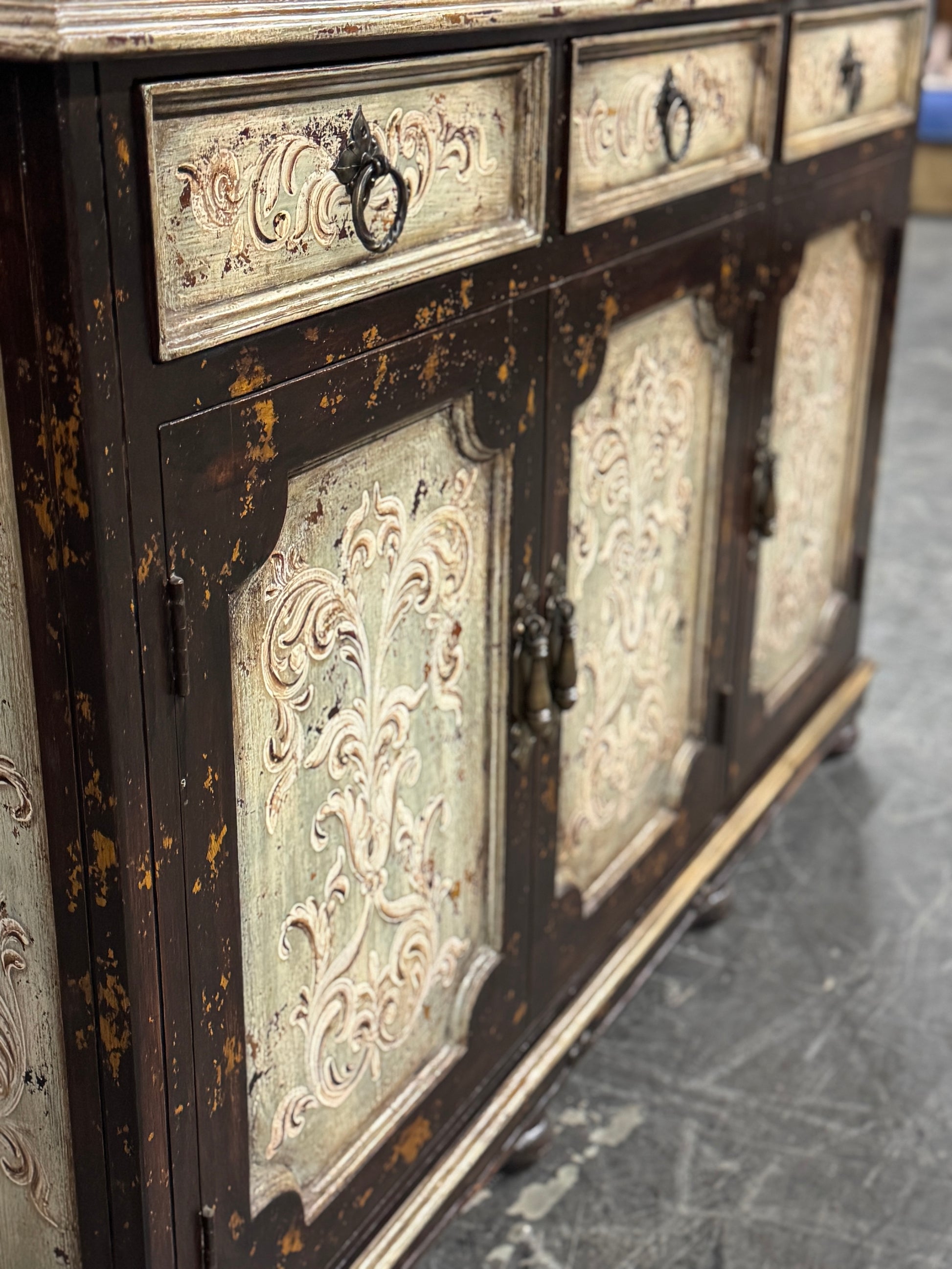 Elevate your dining space with the Castellina Porto Handcrafted Distressed Walnut Buffet Table—an artisan piece that brings warmth, character, and practical storage to everyday meals. Designed for dining rooms that value craftsmanship as much as function, its two-tone finish and decorative details make it a timeless focal point.