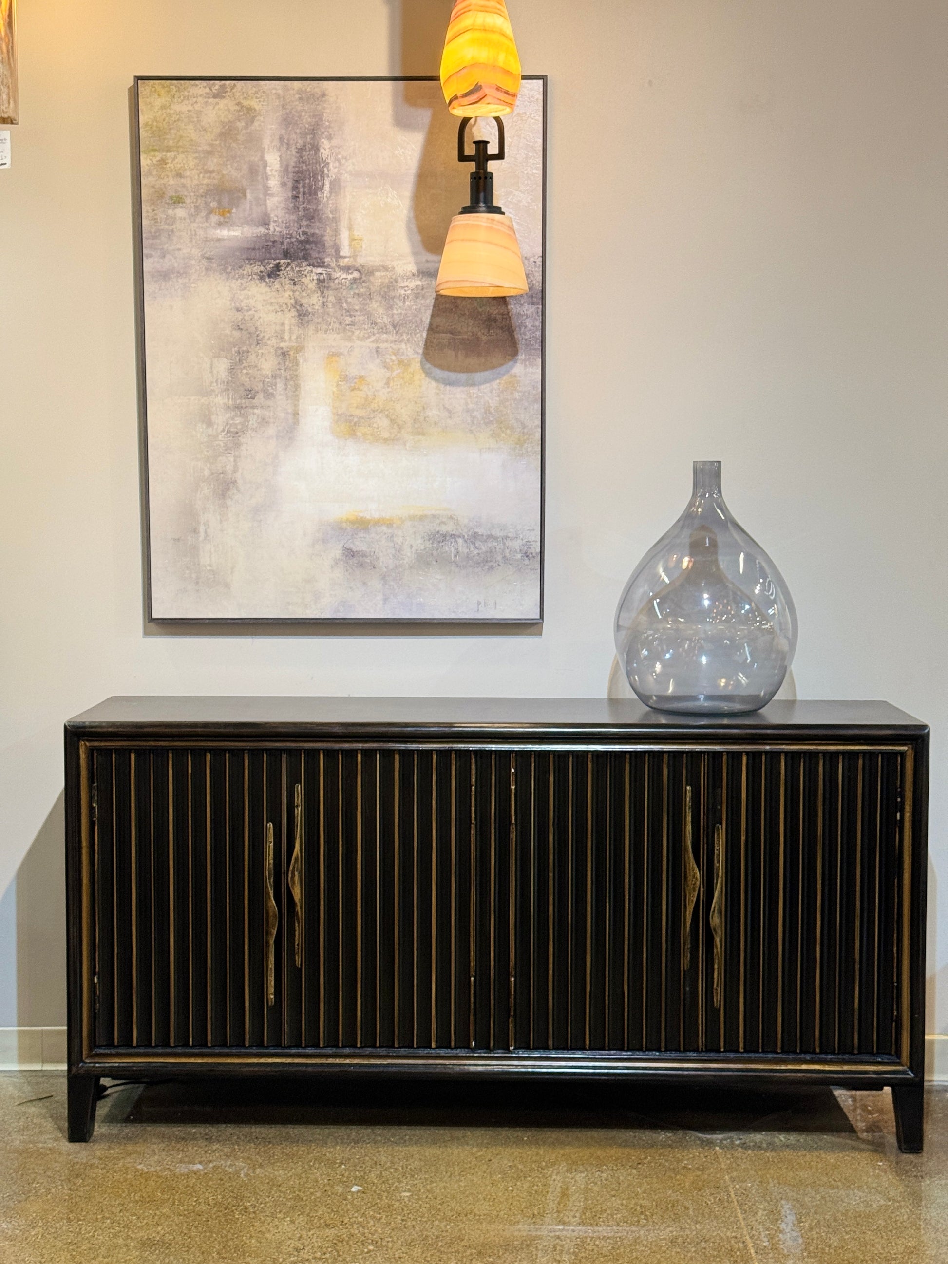 - Versatile furniture piece suitable as a dining buffet, hallway console, or media storage to fit modern and transitional interiors.