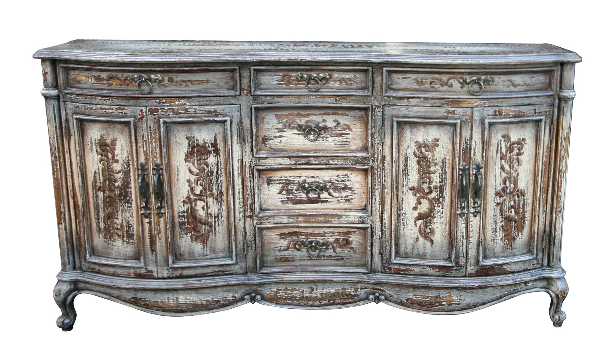 Cheverny Distressed Buffet Console Antique White Finish 16x73x40