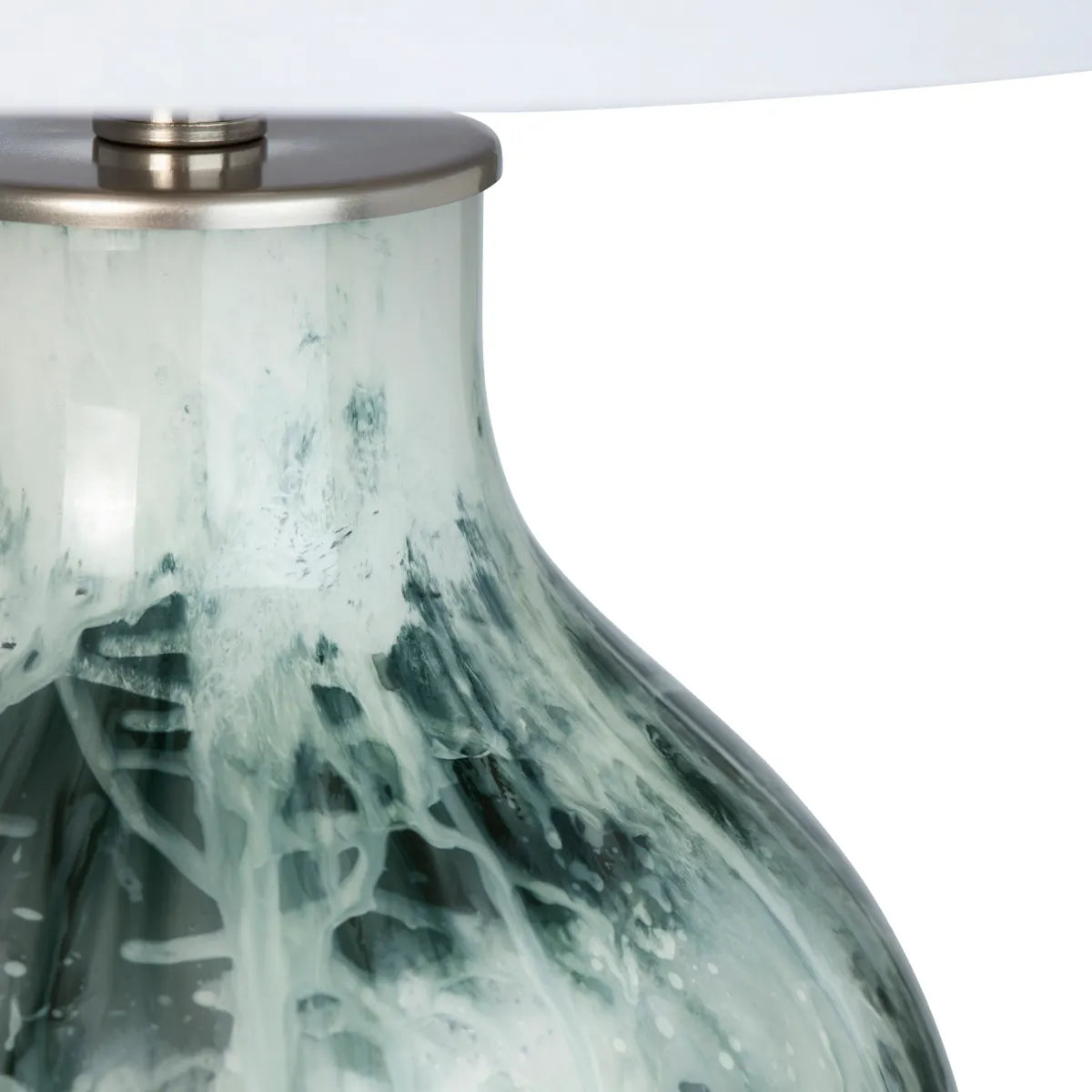 - Grey glass base with a marbled finish that adds subtle character