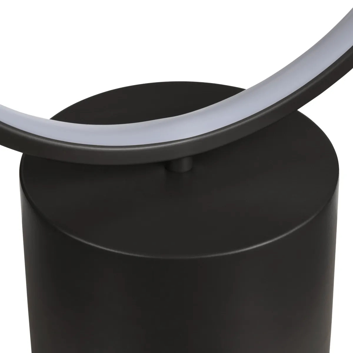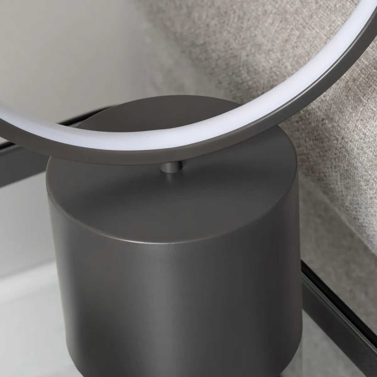 - Circular metal ring accent atop a solid grey base for a modern, architectural look