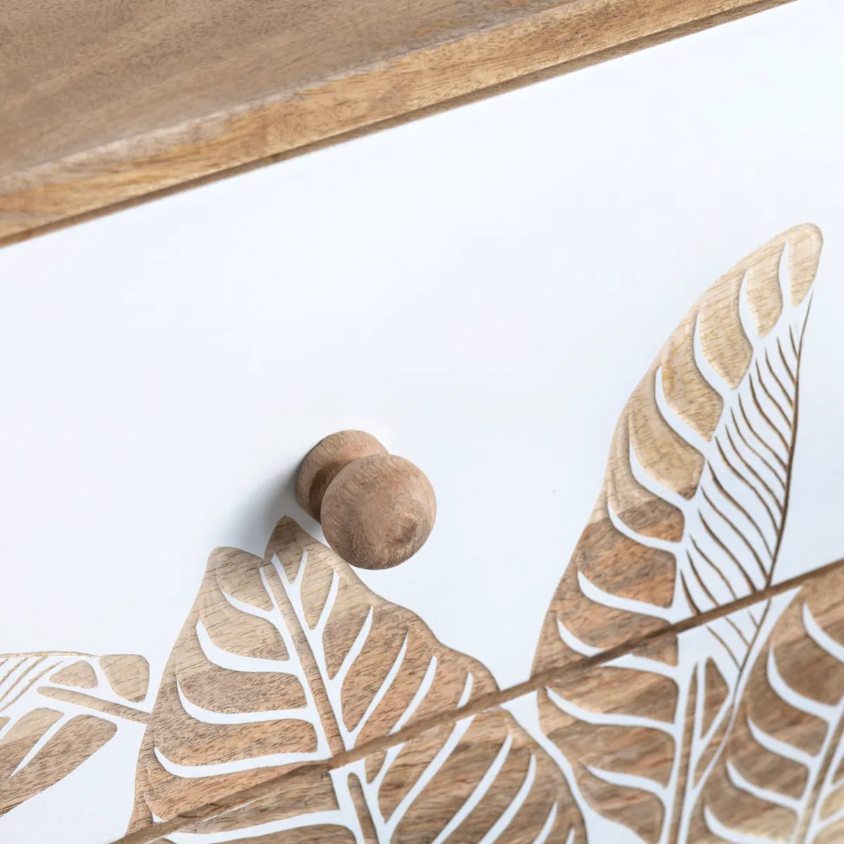 - Design: Coastal aesthetic with white-front panels featuring a graceful botanical leaf motif