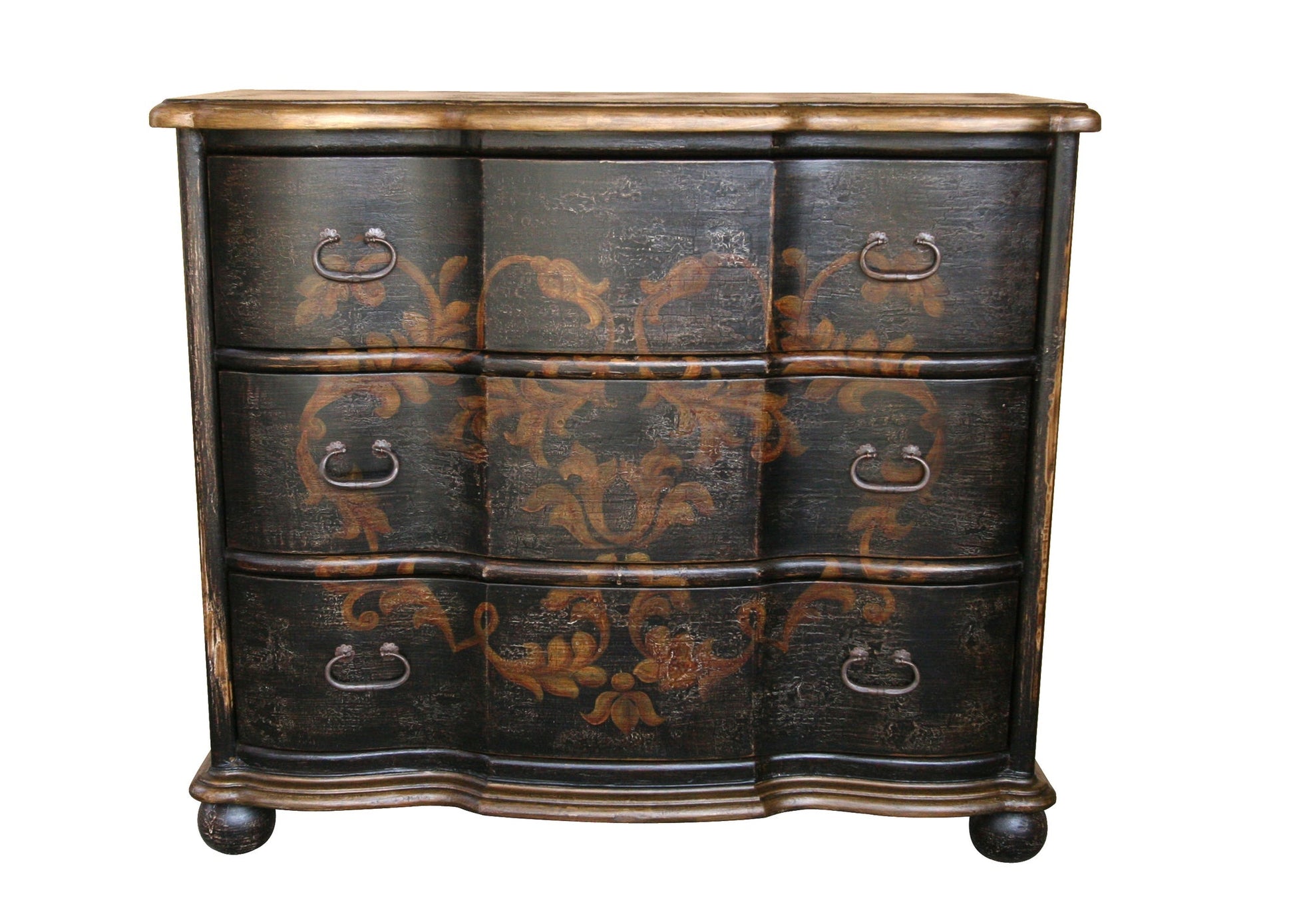 Beyond its storage capacity, this dresser serves as a refined focal point that elevates the room’s aesthetic. The hand-painted damask motif delivers artisanal charm, while the black and antique gold palette pairs easily with a range of decors, from traditional to eclectic. Built for daily use, it combines durability with timeless beauty.