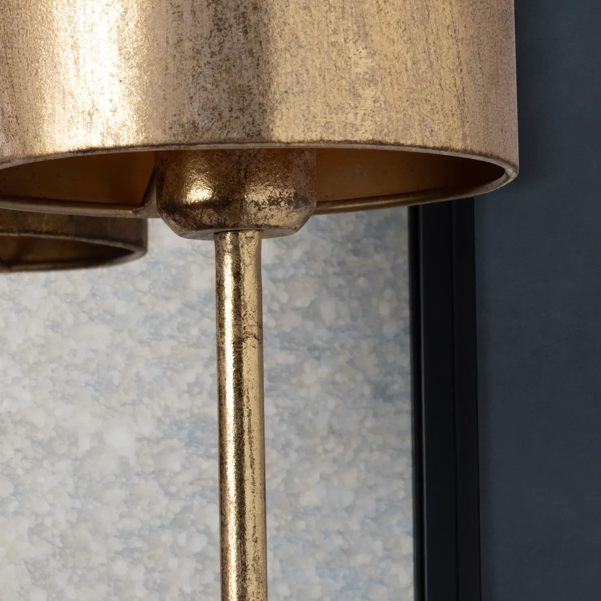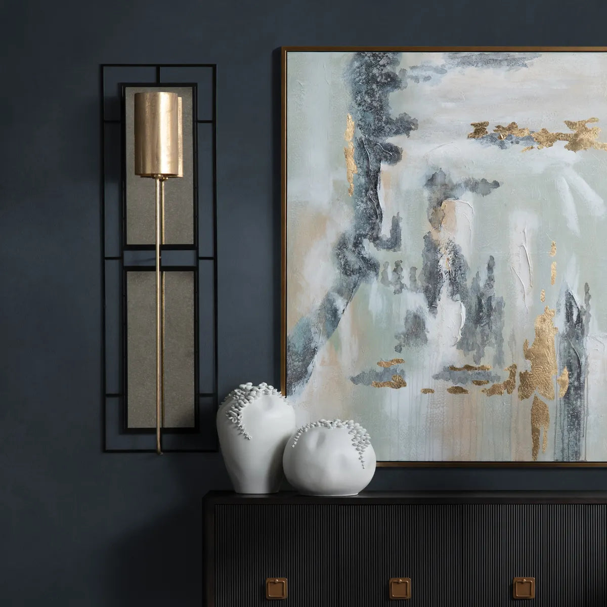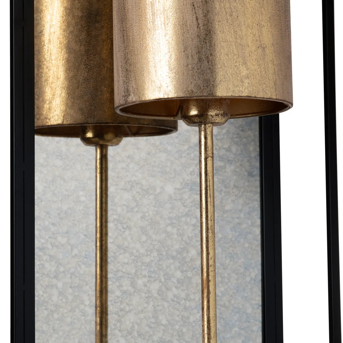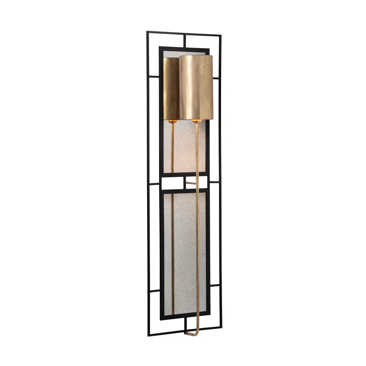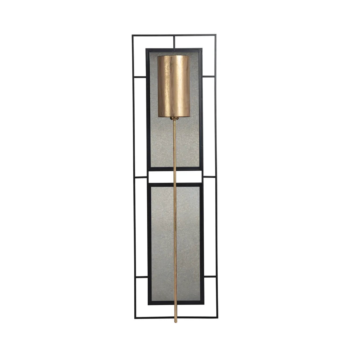 Dimensions: 4.75 x 16.75 x 57.25 (in). lluminate your space with timeless elegance using the Crestview Collection Halston Wall Sconce. Featuring panels of antique mirror framed in black lacquered metal, this sconce exudes sophistication. Its gilded gold metal shade adds a touch of opulence, making it a statement piece in any room.