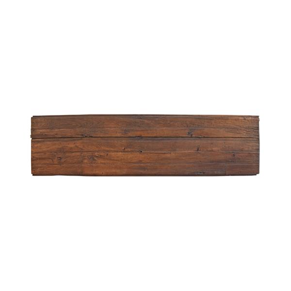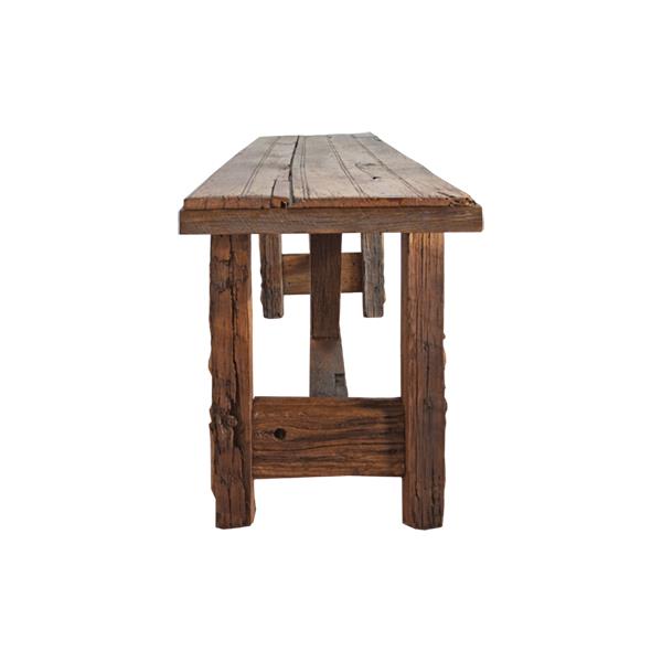 - Material and finish: solid wood with a weathered, rustic brown patina.
