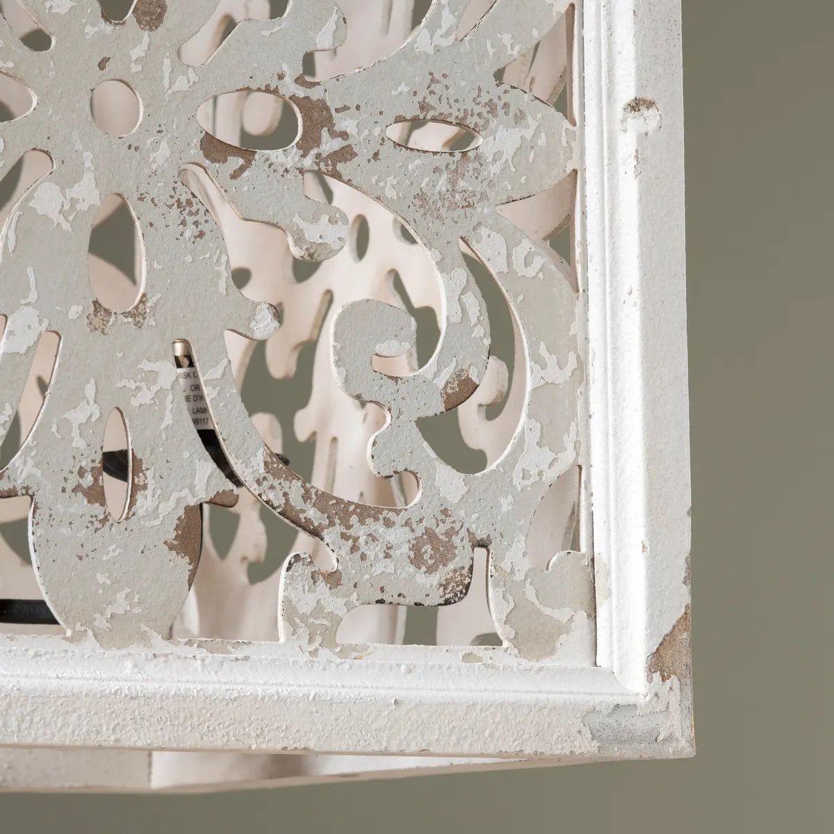 Dimensions: 18 x 18 x 29 (in). Fusing function with a modern flair, this Evolution by Crestview Collection Mariah wood and metal pendant light will illuminate any arrangement in style. Crafted from wood and metal in and distressed white finish, this fixture will cast a warm glow over any arrangement. This trendy modern style fixture will bring a taste of what's trending and have all your guests looking up.