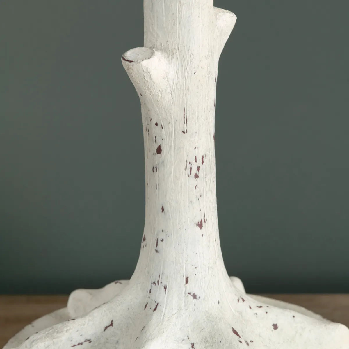 Dimensions: 15 x 15 x 43.5 (in). Standing tall and majestic the Crestview Collection Merrick Buffet Lamp would be perfect for a large sideboard or console in a modern rustic environment. Made of resin it boasts a realistic white birch finish and is topped by a white linen shade.