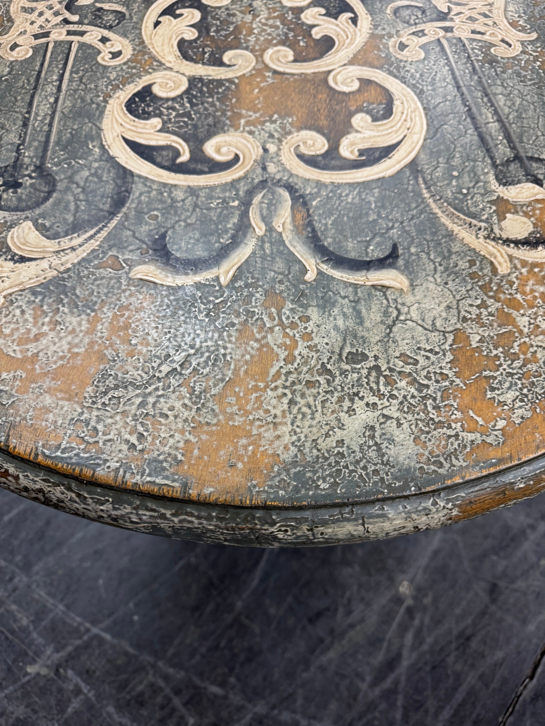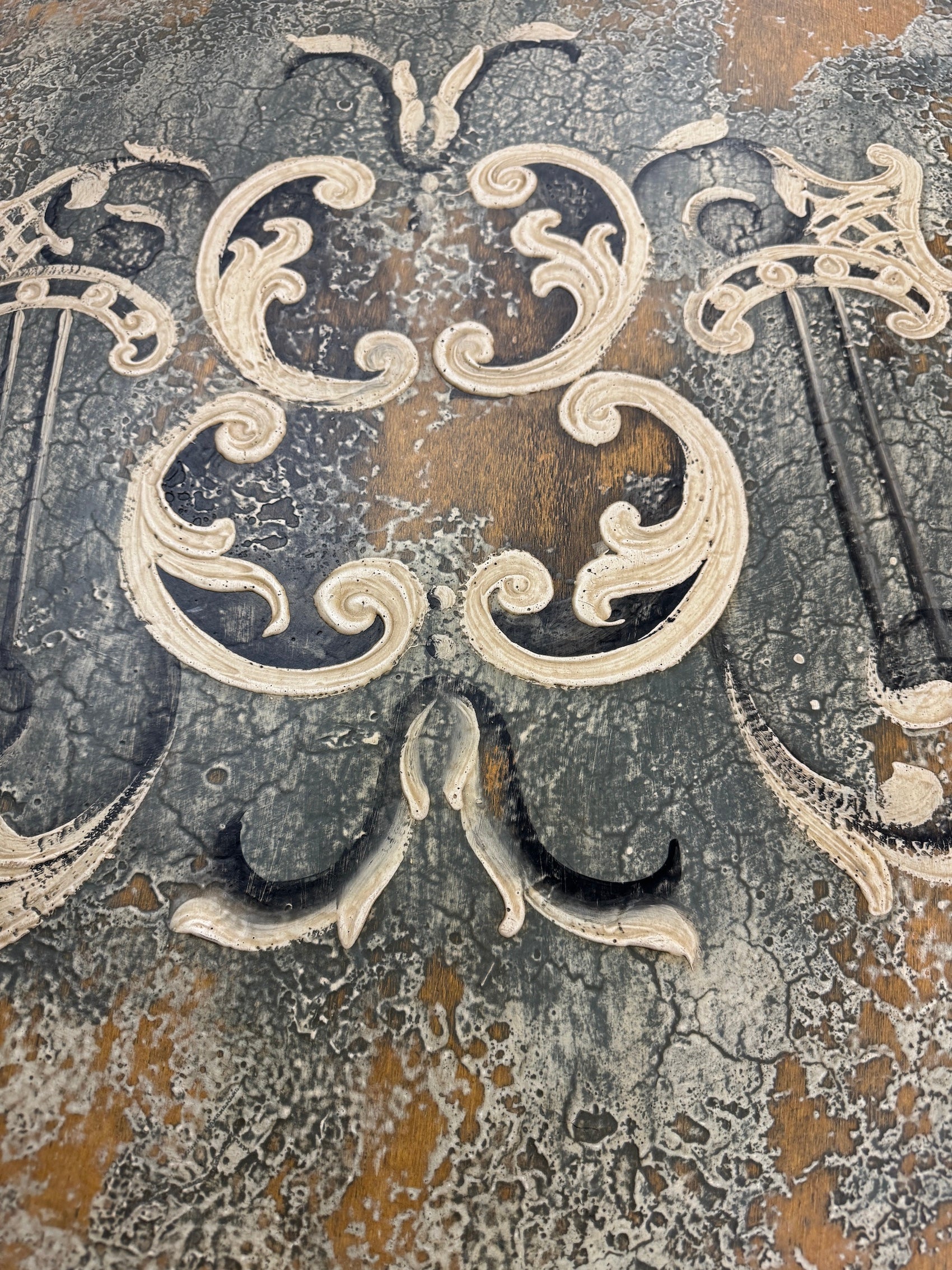 Pontarlier Round Counter Height Table, Black, Intricately Carved Scrollwork Top Surface
